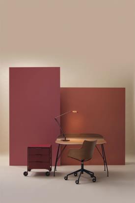 Vainqueur du Compas d’or en 1994, le système de rangement Mobil est présenté en version mate dans les couleurs blanc, noir, vert, prune et bleu ciel. La nouvelle édition est en matériau recyclé issu du tri industriel et conserve les mêmes caractéristiques de résistance et fonctionnalité que la version originale. L’élément de base du système est le tiroir, alterné avec les étagères et les parties supérieures, tous reliés par une structure en aluminium. Dans cette nouvelle finition, la structure ainsi que les roues sont colorées en noir et non plus en gris. Initialement pensé pour le bureau, Mobil saura s’intégrer dans toutes les pièces de la maison, que cela soit la chambre à coucher, le séjour ou la salle de bains.