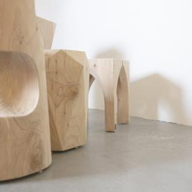 Tabouret à base hexagonale, développé avec une symétrie de facettes évoquant l'éternelle élégance des pierres précieuses.
